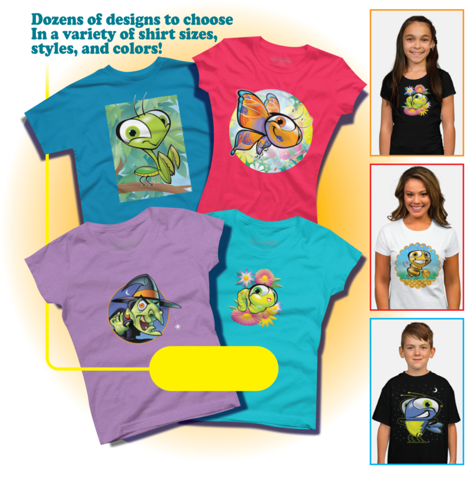 Quality, soft, t-shirts emblazoned with characters from my books (and more), printed in the DTG (direct to garment) process, in permanent, brilliant colored inks!